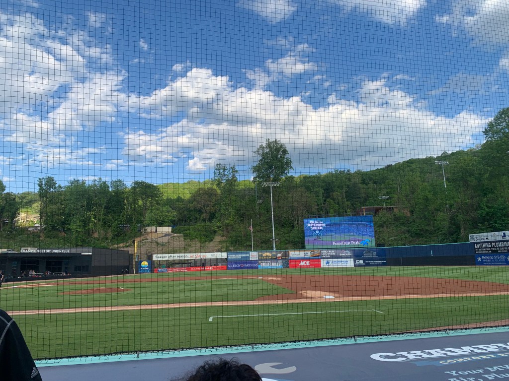 Recently, McCormick field went through some renovations before the 2026 season that included a new scoreboard in left center field. Before this renovation, McCormick field had a tiny scoreboard in a small corner on the big right field wall. The clearly outdated scoreboard would play visual graphics that resembled graphics that would be played on the scoreboard at the bowling alley in the early 2000’s, which honestly contributed to the charm of this historical baseball site. Above McCormick field, there is a public track and soccer field that overlooks the stadium. Throughout the offseason, I was able to observe the renovations as they slowly took place whenever I would go to the track for a run. I could not get a good view of the scoreboard, so my grand reveal of the new scoreboard had to wait until 4/23/26, which was Opening Week for the Tourists, and the first Thirsty Thursday of the year. Other renovations included an indoor merchandise shop, a McCormick field “museum,” and an exclusive bar/restaurant for club members. While modernizing some parts of the ballpark, the charm of McCormick Field was kept.